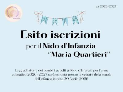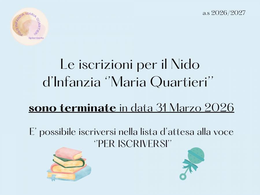 LE ISCRIZIONI PER IL NIDO D'INFANZIA 2026/2027 SONO TERMINATE IN DATA 31 MARZO 2026