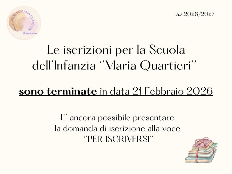 Le iscrizioni alla scuola dell'infanzia sono terminate in data 21 FEBBRAIO 2026