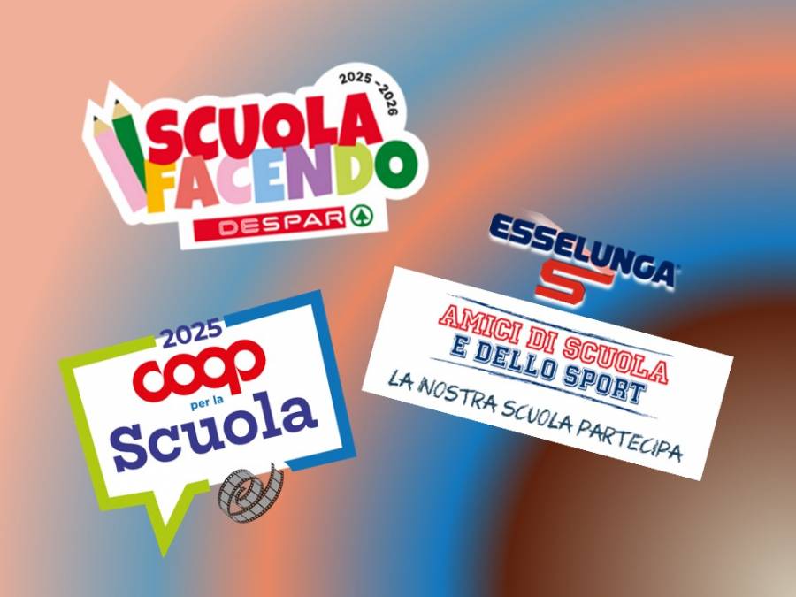 Anche quest’anno la scuola ha aderito alle raccolte punti "AMICI DI SCUOLA" dei supermercati Esselunga, “COOP PER LA SCUOLA” dei supermercati coop e “SCUOLA FACENDO” dei supermercati Despar .